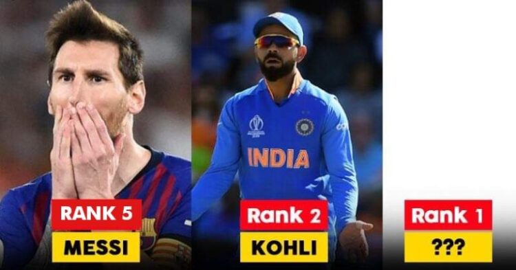 Among foreign players, Lionel Messi is on 5th, Cristiano Ronaldo on 7th and Roger Federer on 9th place.