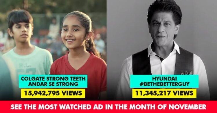 The festivities allow brands to come up with different concepts and showcase themselves in a different light to the consumers. Almost every brand expects to remain on top of peoples mind and this gives the consumers to witness a lot of creative juices flowing all out there. Here is the list of 10 most watched ads on YouTube in the month of November.