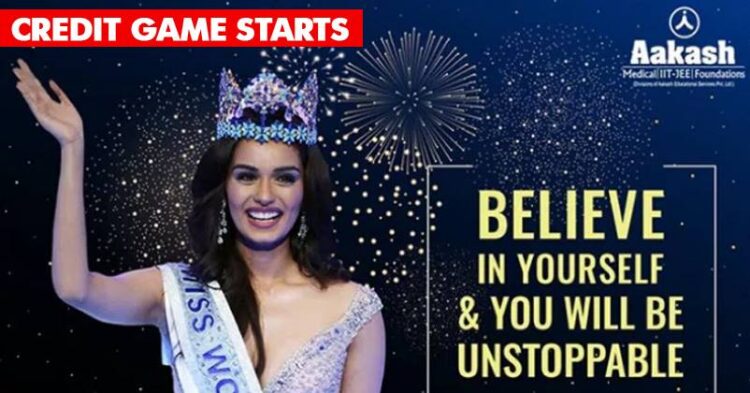 Aakash Institute congratulated the new Miss World Manushi Chhillar for winning the title. Although it doesn’t explain how Aakash helped Manushi to win the title. Below is the image Aakash institute posted.