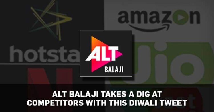 ALTBalaji tried trolling its rivals and wrote Kahaniyan alag, kirdar alag, lekin aise khushi ke mauke par kaun aapka, kaun humara. Aaiye phir, iss Diwali saath mil kar manayein with hashtag #TyoharEntertainmentKa and tagged Netflix, Hotstar, Voot, Zee5, Sony LIV and Amazon Prime. Here is the tweet: