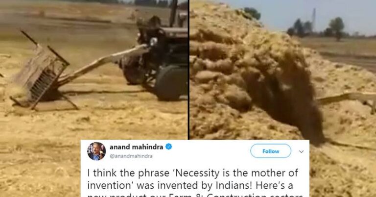 Mahindra tweeted a video clip of 30 seconds with caption, “I think the phrase ‘Necessity is the mother of invention’ was invented by Indians! Here’s a new product our Farm & Construction sectors will have to consider as a replacement for an excavator: A ‘Khatiya-vator’.”