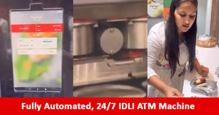 This idli ATM is operated by Freshot Foodbots, a startup that makes fully automated cooking and vending bots. It operates by scanning a QR code. It operates 24/7, and people can avail fresh idlis anytime of the day.