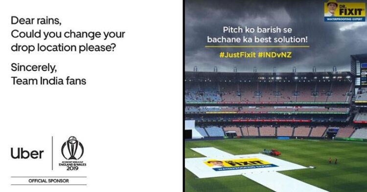 Reaching semi-finals vs New Zealand has made the whole thing more beneficial for brands. Also, rain has made the whole scenario more interesting. Here’s how brands expressed their creativity: