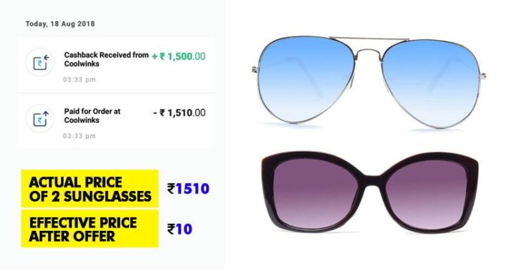 Coolwinks recently sold products at as low as Rs 5 per piece. Yes, you are that right, 2 sunglasses of Coolwinks were bought by many Indian online customers just at the effective final price of Rs 10. Now, this happened as buying 2 products at 800 each with applying SUN20 discount code at Rs 1510. It was all ok till this, but an additional cashback of Rs 1500 was available using Paytm as the payment method. Similar cashback was available using PhonePe and Paypal payment methods too.