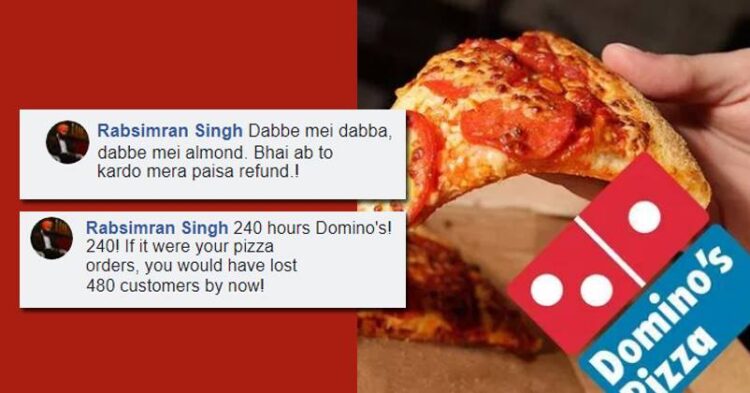 This triggered some anger in Rabsimran and he gave a witty reply to Domino’s