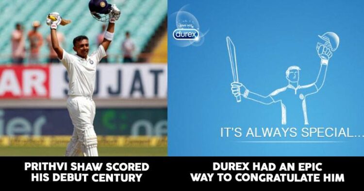 The marketing team of Durex has no chill, every time it comes up with something entertaining yet related to the brand. The witty social media posts of Durex India has helped the brand in becoming the most popular condom brand in the country. Like any other popular incident, Durex again proved its creativity by wishing Prithvi Shaw on his first century.