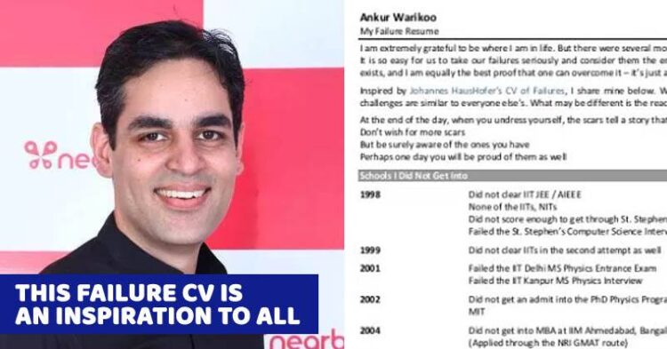 Entrepreneur and Investor Ankur Warikoo has shared a CV in which he has written all his failures. You must be thinking about the purpose of writing such CV, well he has done that to help other professionals to know where they lacked and how they can improve their career. Also, he believes that this CV will make people realize that problems and difficulties are similar but what makes successful people different is their reaction towards it.