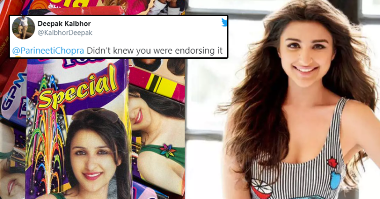 Although many celebrities encouraged Indians to have a safe Diwali with lights and Diyas, there are many who’re unintentionally the ambassadors of crackers being manufactured this Diwali and one such image featuring Bollywood actress Parineeti Chopra on a Patakha Box was recently shared by an online user. “Didn’t knew you were endorsing it,” the person wrote along with the picture.