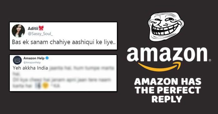 Brands these days handle customer requests in very interactive ways on social media. They know that their replies make a huge impact on the brand image. Twitter is a great platform for people to review products and services companies provide and an Indian female tried trolling Amazon India with a complain but the way Amazon replied is something very funny and creative.