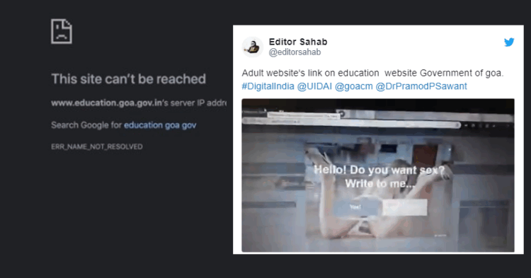 Adult website's link on education website Government of goa. #DigitalIndia @UIDAI @goacm @DrPramodPSawant pic.twitter.com/G7U2U9bmWp