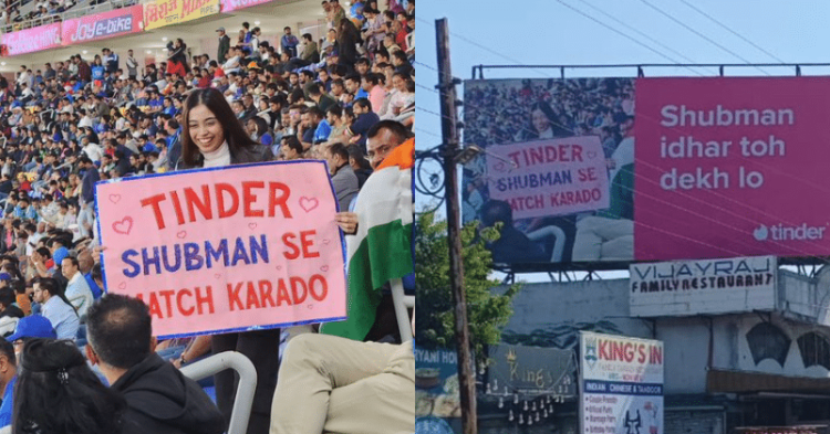 Shubman Gill’s towering century in the third Twenty20 International between New Zealand and India recently held in Ahmedabad at the Narendra Modi Stadium stole the show. Gill, who got his first double centuries in the ODI series over New Zealand, smashed an unbeaten 126 off 63 balls to set up India’s victory. A fan was spotted carrying a sign that said, “Tinder, Shubman se match karado,” while Gill competed against the New Zealand bowlers.