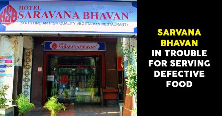 A consumer disputes forum has ordered popular south Indian chain Saravana Bhavan to pay Rs 1.10 lakh to a Supreme Court advocate as compensation for alleged deficiency in serving food to him.