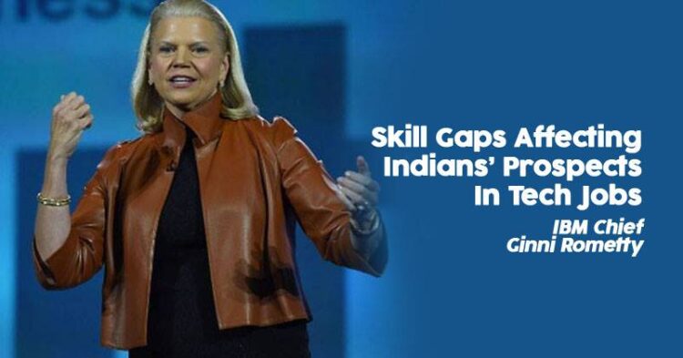The chief of the American technology giant IBM, Ginny Rometty, Wednesday said India faces the typical problem of job applicants lacking the required skillsets for tech jobs, affirming jobs are available though. Rometty, the chairman, president and chief executive of the company, added the same problem is faced in other markets as well.