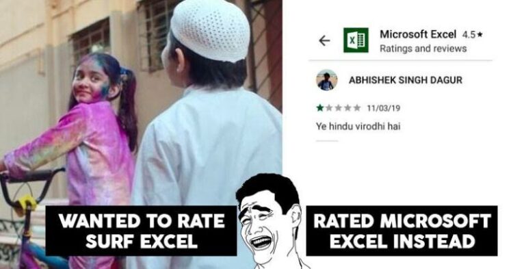 Bhakts giving bad to reviews to Microsoft Excel bcz it ends with Excel.#Surf_Excel #SurfExcel #Surf_Excel_India pic.twitter.com/hQVBtvLiBk