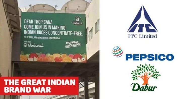 We all know that Indian packaged fruits juice industry is rising and brands like Dabur, ITC and PepsiCo are trying every possible thing to capture this market and earn profits. The latest twist is that ITC has publicly displayed billboards challenging both PepsiCo and Dabur to ‘make Indian juices concentrate free’