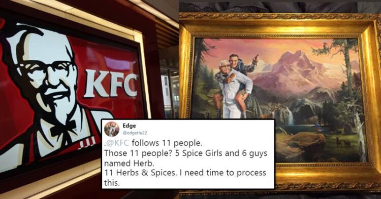 Mike Edgett the man who spotted KFC’s hidden secret on their twitter account has been sent a beautiful painting by KFC as a gift for his work. Mike noticed that KFC only follows 11 people on their twitter account and out of these 11 six men are having the name Herb and five Spice Girls, which has a complete reference to KFC’s 11 Herbs and Spices of their secret recipe. This is what he tweeted