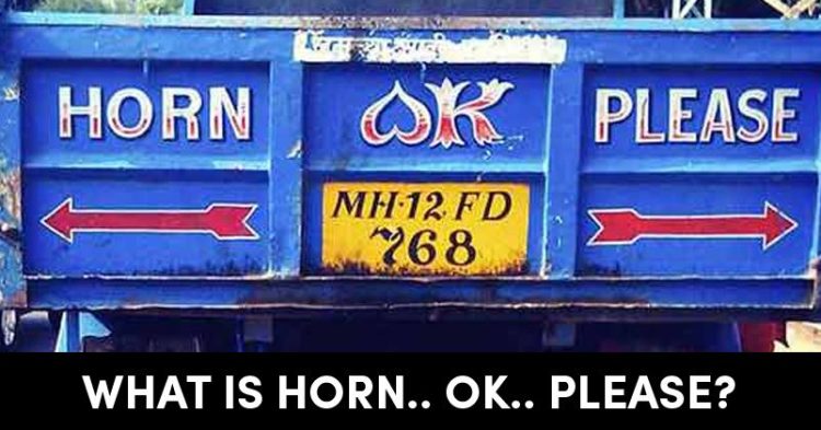 How many times have we noticed “Horn OK Please” written at the back of trucks in India? Almost all of them have it displayed and it is such a strange thing. Isn’t it? Have any of you wondered what it actually means?