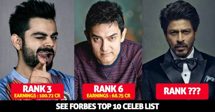 Shah Rukh Khan, with an annual income of Rs. 170.5 crore, has retained his position at No 2. The newly married Indian captain Virat Kohli is in the third position with Rs. 100.72 crore. Although the top 3 has been able to retain their positions they have seen a decrease of almost 20 percent in their cumulative earnings as compared to last year.