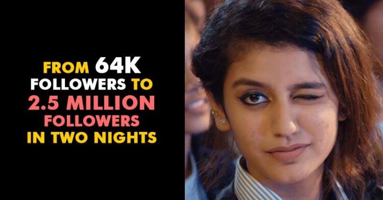Priya Prakash Varrier, a name that became nation’s new crush just in a matter of days. Her popularity can be guessed by the fact that she now has over 7 million followers on Instagram. All this happened due to the video of Oru Adaar Love which is a song from her upcoming movie received millions of views in a single day.