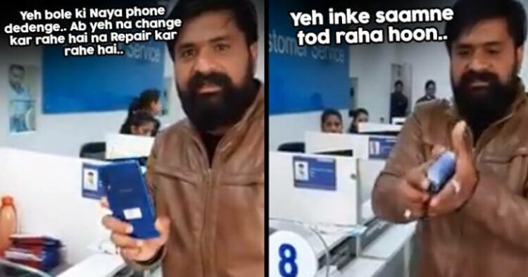 A video has been getting viral showing a man breaking his newly bought Samsung phone worth Rs 21000 after getting fed up from a customer care center.