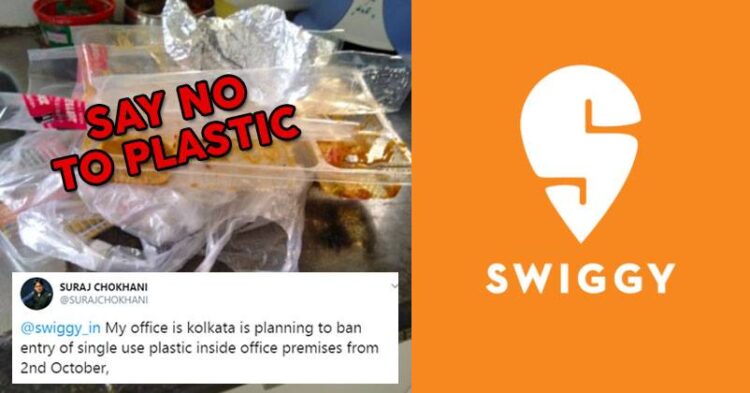 Knowing this, Mr Chokhani instantly took to his twitter handle and asked Swiggy about this. “My office is Kolkata is planning to ban entry of single-use plastic inside office premises from 2nd October, can u specify on ur app which partner of urs deliver food in biodegradable containers so that I can order from there,” he wrote.