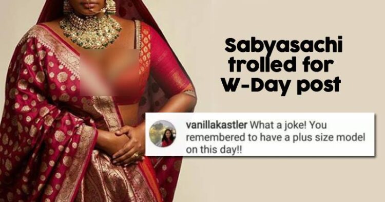To attract audience and make a statement, Indian fashion designer Sabyasachi Mukherjee took to social media to send out a Women’s Day wish. He collaborated with a plus-size model to send out a message of ‘self-confidence’ and shared two photographs with caption that read, “This International Women’s Day, celebrate confidence.” Below you can see the images: