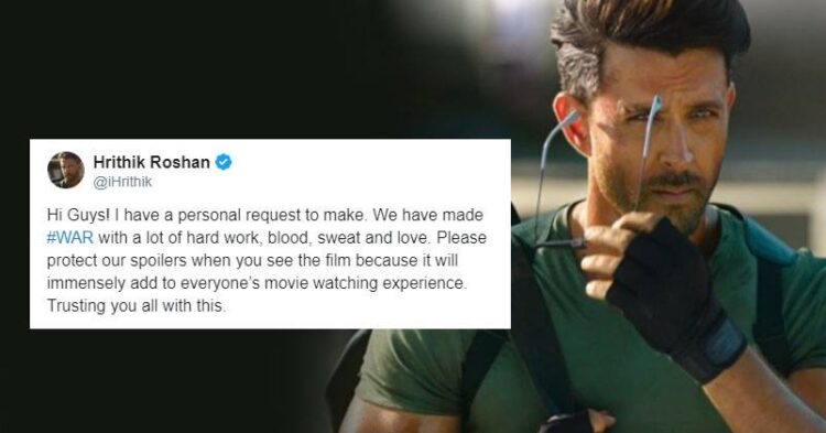 Hi Guys! I have a personal request to make. We have made #WAR with a lot of hard work, blood, sweat and love. Please protect our spoilers when you see the film because it will immensely add to everyone’s movie watching experience. Trusting you all with this.