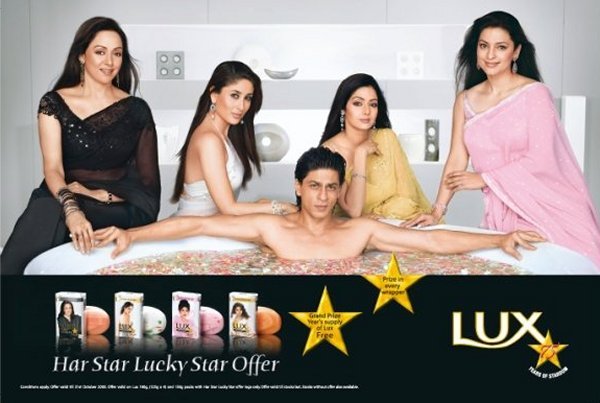 LUX is featuring Shah Rukh for a long time. Among all the ads he has done with LUX, the most love he got from the audience was when actresses were seen assisting him into a bathtub.