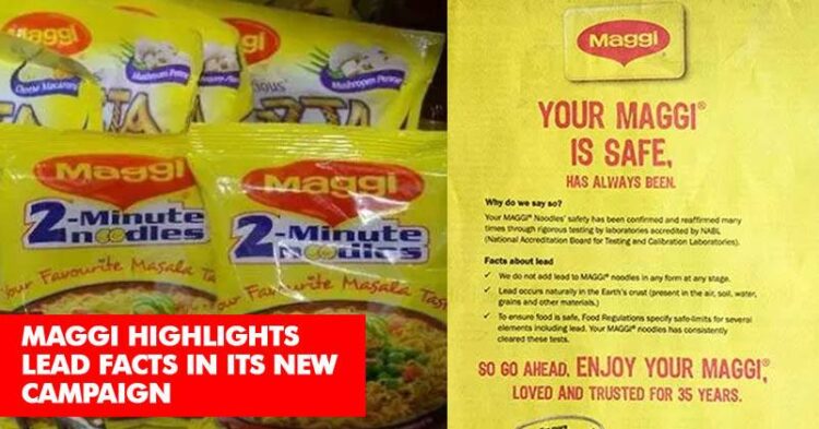 The ad talks about consumers safety saying, “Your Maggi is Safe, Has Always Been.” This print ad is reminiscent of the Maggi re-launch ads of 2015.