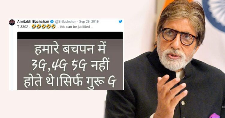 “Humare bachpan mein 3G, 4G, 5G nahi hote thhe. Sirf Guru G aur Pita G, Mata G hote thhe. Ek hi thappad mein network aa jaata thaa (We did not have 3G, 4G, 5G when we were young. We only had Guru G – teacher, Pita G – father and Mata G – mother),” Big B’s post reads in Hindi. You can read it below: