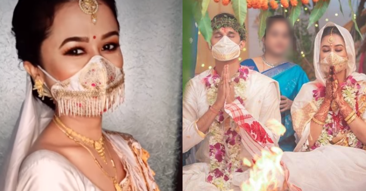 Recently, an Assamese bride has gone viral for wearing a silk mask which was specially designed to match her silk wedding saree.