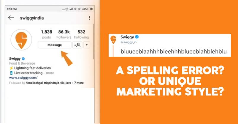 Indian brands have become very creative when it comes to engaging audience online. Recently, Swiggy did a smart move that has managed to grab attention of people on social media. The food delivery’s handle posted “bluueeblaahhhbleehhhblueeblahblehblue” – looks like a careless mistake Swiggy’s social media team, right?