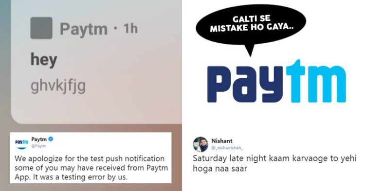 “Hi! We apologize for the test push notification you have received from Paytm App. It was a testing error by us. We are ensuring that such errors are eliminated completely in future. Thanks,” Paytm tweeted.