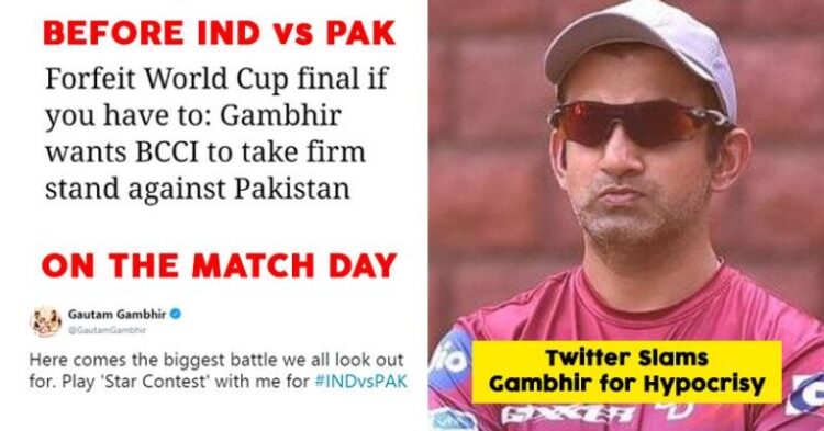 To know why we say this, know that when Gambhir was running for elections, he tweeted that India should boycott playing in the World Cup and now he was showing his excitement for India-Pakistan match while promoting CricPlay.