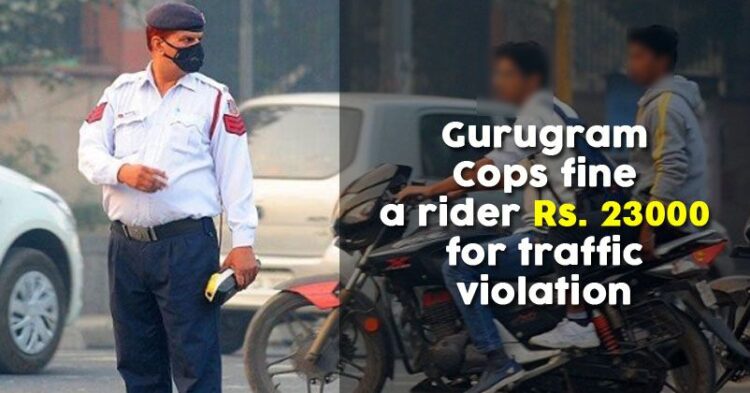 He was fined Rs 5,000 for driving without licence, Rs. 5,000 for not carrying the registration certificate, Rs.2,000 for driving without insurance, Rs.10,000 for violating pollution laws and Rs.1,000 for driving without helmet making it a cumulative fine of Rs. 23,000.