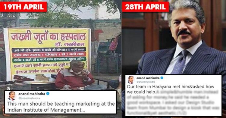 Anand took to Twitter and shared that the Haryana team of Mahindra group made efforts to find the ‘Shoe Doctor’ and when they offered him help, all he wanted was a better workplace. For the completing this wish, Mahindra has told his design team to make a fully functional kiosk for the cobbler.