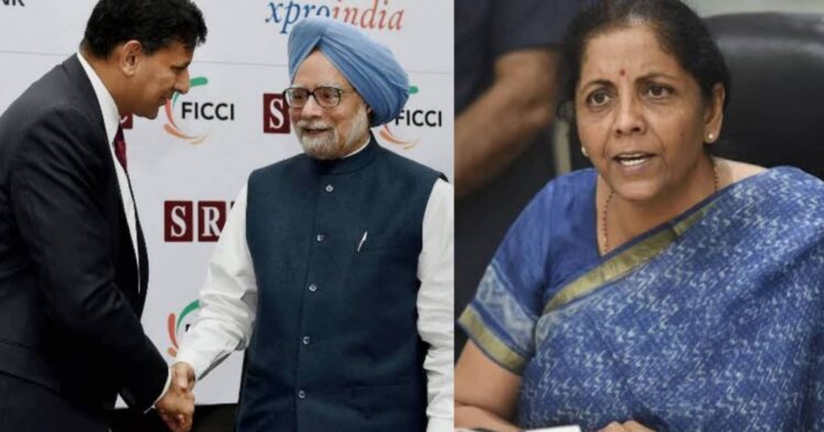 Finance Minister Nirmala Sitharaman, while addressing the current banking crisis, Columbia University’s School of International and Public Affairs on Tuesday, said that she holds the duo of Manmohan Singh & Raghuram Rajan responsible for subjecting public sector banks (PSBs) to their “worst phase”.