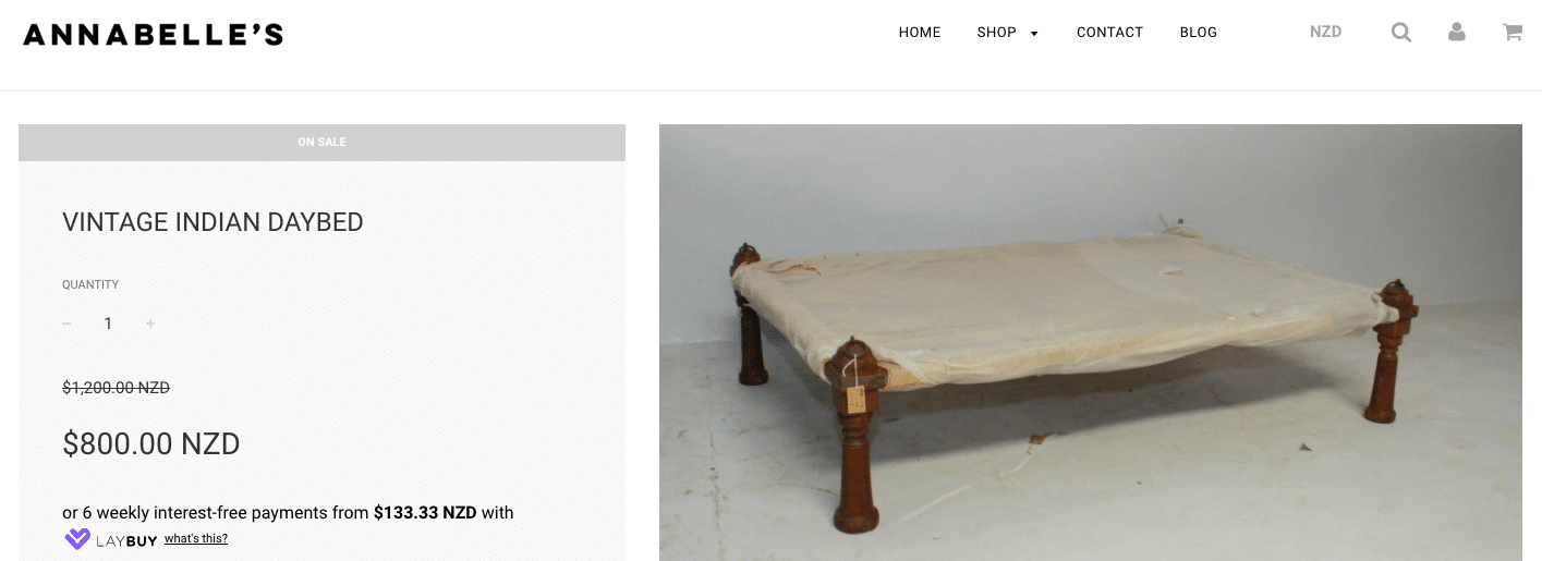 A New Zealand furniture brand, Annabelle’s, is selling a common Indian string cot for $800.00 NZD or Rs 41,211.85 in the name of ‘Vintage Products’.