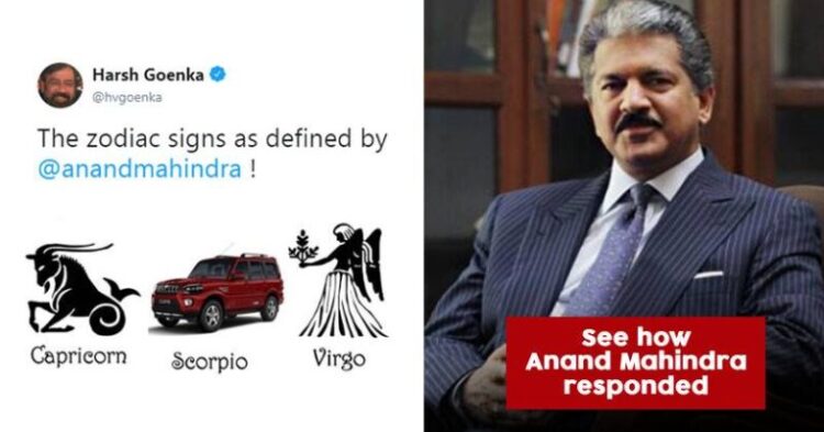 RPG Group chairman Harsh Goenka and the Chairman of Mahindra Group Anand Mahindra are two very popular and active business personalities on Twitter. Both these are known for sharing some really inspiring stuff on Twitter. Recently, what caught our eye is Harsh trying to troll Anand Mahindra. Referring to the Mahindra Scorpio, a vehicle manufactured by Anand’s company, Harsh shared the list of all twelve zodiac sign.