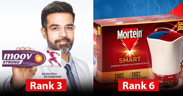 Following the lead, Mortein Smart, Lalithaa Jewellery, Dettol Antiseptic Liquid, Clinic Plus Shampoo, and Harpic Bathroom Cleaner were placed on the sixth, seventh, eighth, ninth, and tenth position respectively.