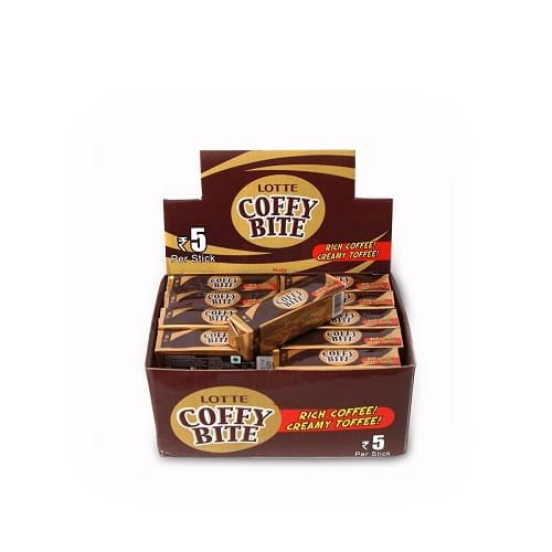 Coffy Bite is a very popular brand of lotte India confectionery, the parent company of Lotte India is the Korean Lotte Group. The company is a leading confectionery player in India with history of over 32 years existence using Coffy Bite, Lotte Eclairs and Lotte Choco Pie.