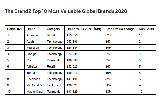 The world’s most valuable brands have seen an increase of 5.9% in their value despite the impacts of COVID-19 pandemic according to BrandZ™ 2020 released report. Most of these brands have shown that they are far more versatile and ready to transform according to the needs in difficult times.