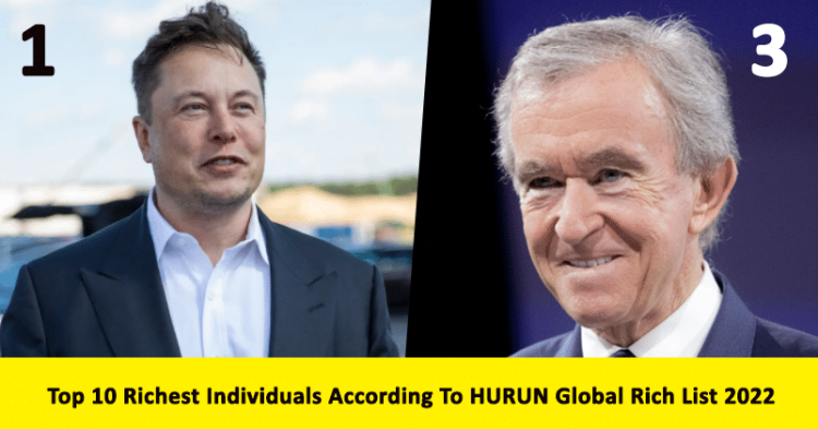 Reliance industries’ Mukesh Ambani comes ninth with $103 billion and Bertrand Puech of Hermes is the tenth richest person in the world, with $102 billion, according to the HURUN Global Rich List 2022