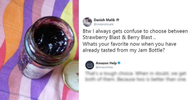 This probably made Danish laugh and he once again tried trolling Amazon by asking a funny question. He wrote “I always gets confuse to choose between Strawberry Blast & Berry Blast. Whats your favorite now when you have already tasted from my Jam Bottle?”