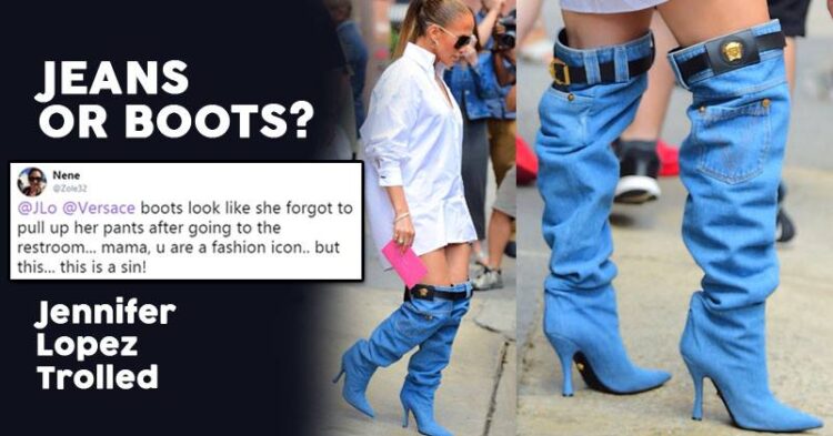 Fashion trends are changing very quickly, in the race of designing something new, brands end up in making weird products sometimes. We all know that Jennifer Lopez is famous for her stylish outfits. JLo knows how to carry herself even with some uneasy looking designs but what she wore recently has made her fans mock her for swapping her pants for denim boots.