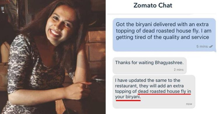 However, the latest conversation between a Delhi woman and Zomato executive is creating news for a different reason. Bhagyashree, a Delhi resident who had placed an order for Biryani saw a fly in her meal and being disappointed, she decided to share the matter with the executive at Zomato and wrote to the customer care complaining about ‘extra topping.’