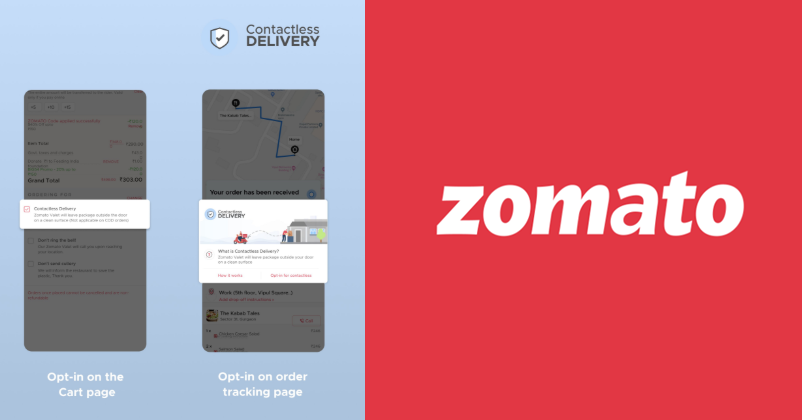 Zomato has introduced a new option of ‘Contact less’ delivery that allows its ‘sick’ customers to receive their orders without having to get in contact with the delivery executive. By choosing this option, the executive can send a picture to the customer on the application itself showing that the food packet has been placed outside the customer’s door. Once the delivery executive leaves, the customer can pick up the order. This innovation is a great step to protect the delivery executives as well as the customers.