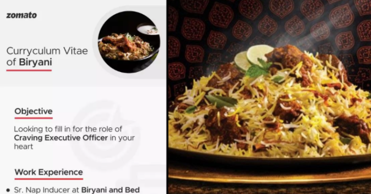 So Zomato understood that while the country was slowly coming out of the lockdown, the most ordered dish on the app in the country was none other than ‘Biryani’. The brand was quick to incorporate this in their email marketing and decided to make a ‘Curryculum’ Vitae (not a spelling error) for the dish.