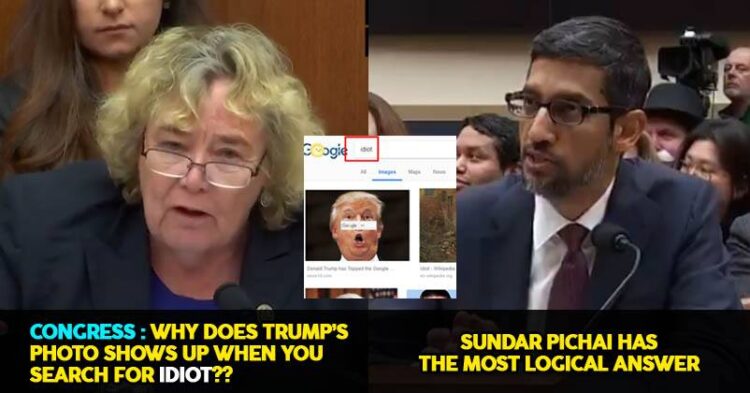 Pichai tried explaining how Google search results aren’t biased. But there was one question that got the eyes and ears of everyone: “Manipulation of search results, I think it’s important to talk about how search works,” Lofgren said. “Right now, if you Google the word ‘idiot,’ under images, a picture of Donald Trump comes up. I just did that.”