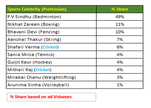 According to the TAM “AdEx-Female Sports Celebrity Endorsement” Report, the second half of 2022 will see a 30% increase in ad volume over the first half.